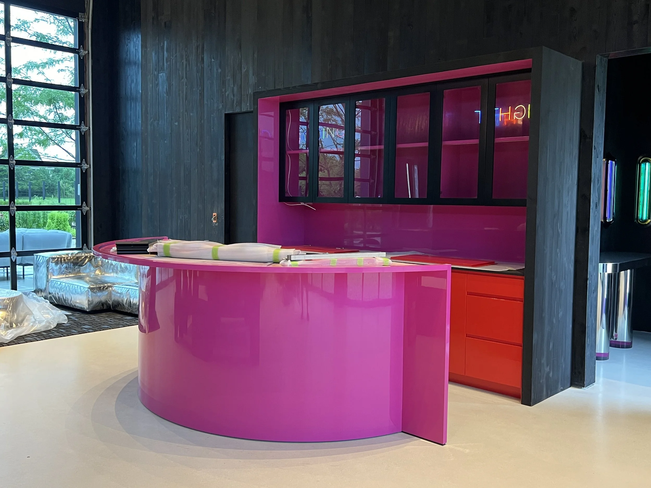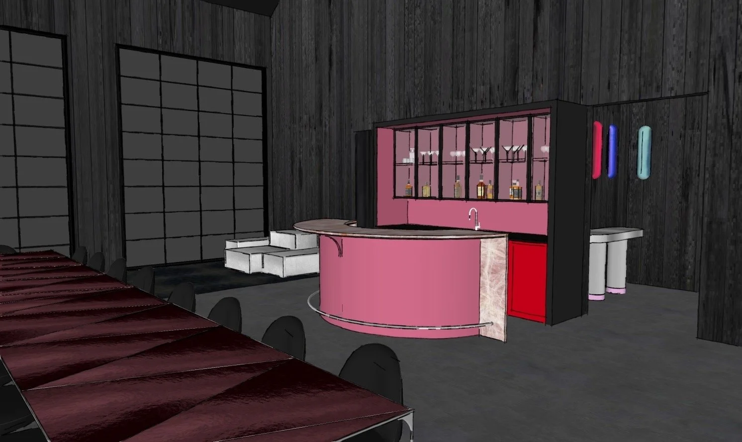 Concept rendering of the custom lacquered hot pink bar.