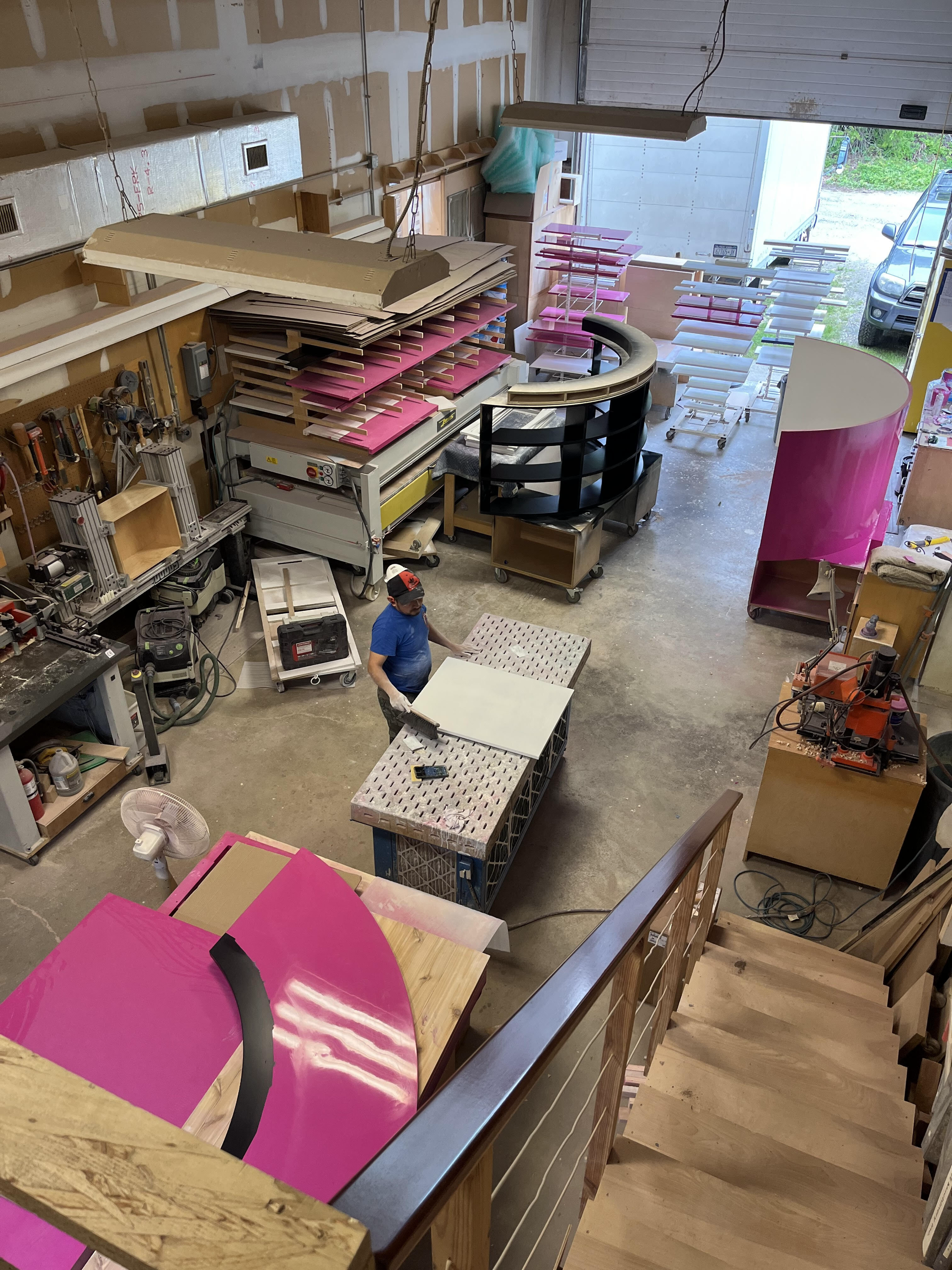 I just loved seeing all the hot pink scattered throughout the workroom!